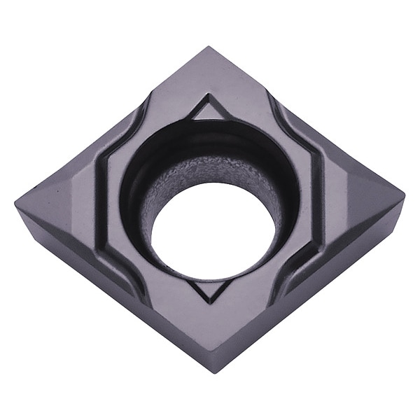Diamond Turning Insert, Chip-Breaker Code CK, Inscribed Circle 3/8 in, Megacoat, ANSI Code CCGT32505MPCK, Chip-Breaker Style Finishing, Clearance Angle 7 Degrees , Coating Process PVD