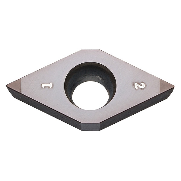 Diamond Turning Insert, Chip-Breaker Code MES, Inscribed Circle 3/8 in, Megacoat, ANSI Code DCMW32505S00525MES, Chip-Breaker Style Finishing, Clearance Angle 7 Degrees