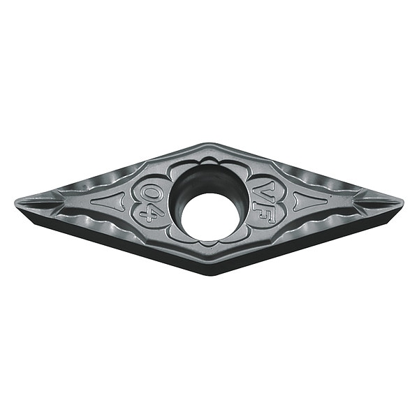 Diamond Turning Insert, Chip-Breaker Code VF, Inscribed Circle 3/8 in, Bright (Uncoated), ANSI Code VBMT3305VF, Chip-Breaker Style Finishing, Clearance Angle 5 Degrees