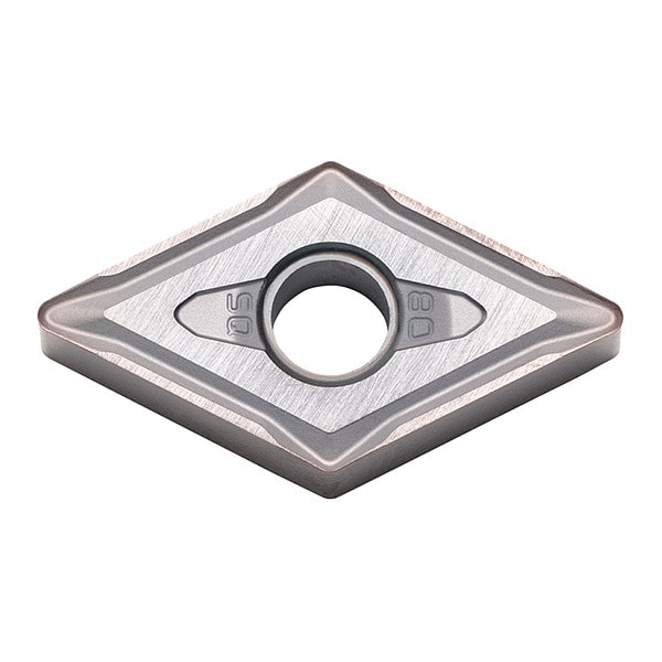 Diamond Turning Insert, Chip-Breaker Code SQ, Inscribed Circle 1/2 in, Megacoat Hard, ANSI Code DNMG431SQ, Chip-Breaker Style Medium Finishing, Clearance Angle 0 Degrees , Coating Process PVD