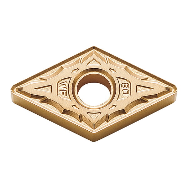 Diamond Turning Insert, Chip-Breaker Code WF, Inscribed Circle 1/2 in, TiCN+Al2O3+TiN, ANSI Code DNMX441WF, Chip-Breaker Style Finishing, Clearance Angle 0 Degrees , Coating Process CVD