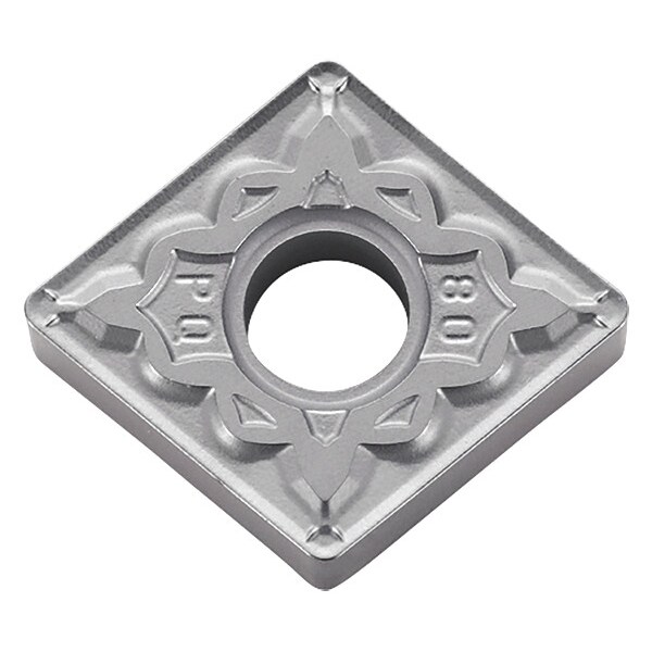 Diamond Turning Insert, Chip-Breaker Code PQ, Inscribed Circle 1/2 in, Bright (Uncoated), ANSI Code CNMG432PQ, Chip-Breaker Style Medium Finishing, Clearance Angle 0 Degrees