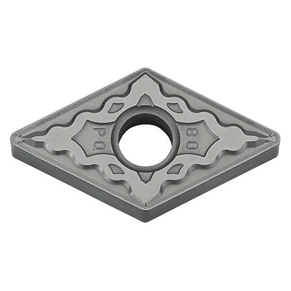 Diamond Turning Insert, Chip-Breaker Code PQ, Inscribed Circle 1/2 in, Bright (Uncoated), ANSI Code DNMG432PQ, Chip-Breaker Style Medium Finishing, Clearance Angle 0 Degrees