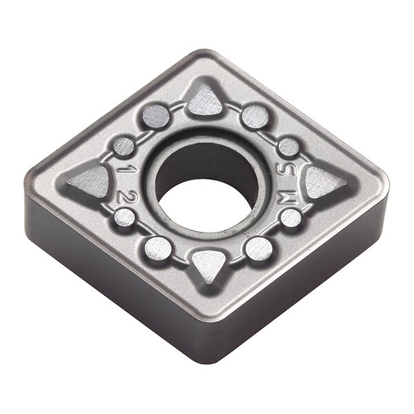 Diamond Turning Insert, Chip-Breaker Code MS, Inscribed Circle 1/2 in, Megacoat Hard, ANSI Code CNMG433MS, Chip-Breaker Style Medium Roughing, Clearance Angle 0 Degrees , Coating Process PVD