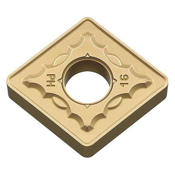 Diamond Turning Insert, Chip-Breaker Code PH, Inscribed Circle 1/2 in, TiCN+Al2O3+TiN, ANSI Code CNMG433PH, Chip-Breaker Style Roughing, Clearance Angle 0 Degrees , Coating Process CVD