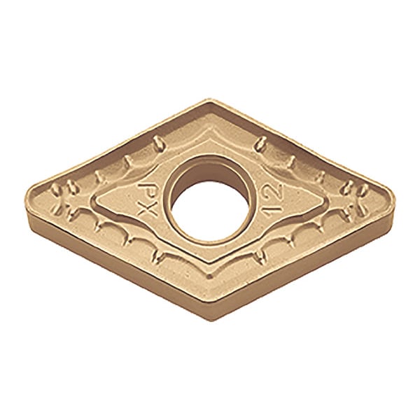 Diamond Turning Insert, Chip-Breaker Code PX, Inscribed Circle 1/2 in, TiCN+Al2O3+TiN, ANSI Code DNMM433PX, Chip-Breaker Style Roughing, Clearance Angle 0 Degrees , Coating Process CVD