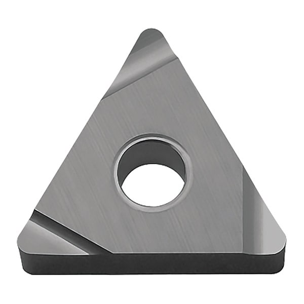 Diamond Turning Insert, Chip-Breaker Code S, Inscribed Circle 3/8 in, Bright (Uncoated), ANSI Code TNGG331RS, Chip-Breaker Style Finishing, Clearance Angle 0 Degrees