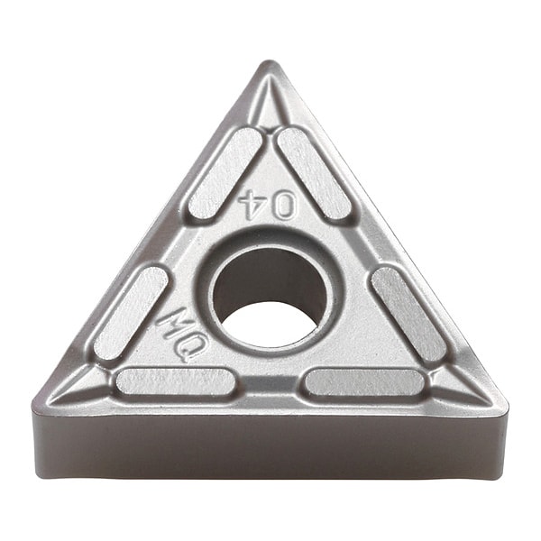Diamond Turning Insert, Chip-Breaker Code MQ, Inscribed Circle 3/8 in, Megacoat Hard, ANSI Code TNMG331MQ, Chip-Breaker Style Medium Finishing, Clearance Angle 0 Degrees , Coating Process PVD