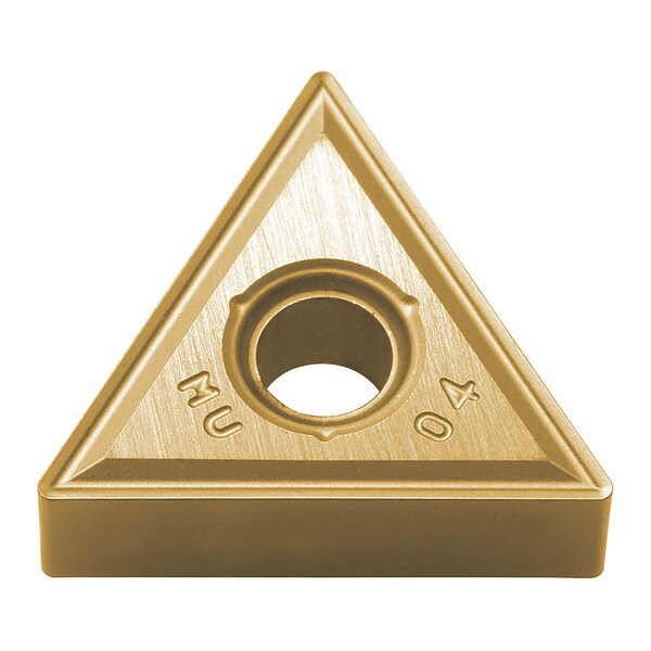Diamond Turning Insert, Chip-Breaker Code MU, Inscribed Circle 3/8 in, TiCN+Al2O3+TiN, ANSI Code TNMG331MU, Chip-Breaker Style Medium Roughing, Clearance Angle 0 Degrees , Coating Process CVD