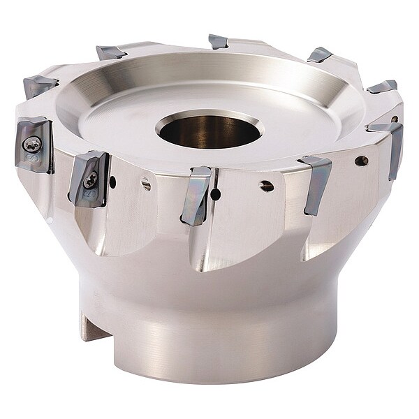 Indexable Face Mill, Max. Cutting Dia. 80.00mm, Arbor Dia. 1 in, Depth of Cut 10.00mm, ANSI Code MEC080R1110T, Coolant Fed Coolant Through, Cutting Application Face Milling, Helical Milling, Plunge Cutting, Shoulder Milling, Slotting