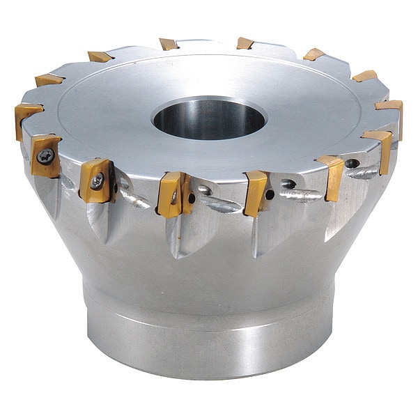 Indexable Face Mill, Max. Cutting Dia. 2 in, Arbor Dia. 3/4 in, Depth of Cut 0.2362 in, ANSI Code MECX2000R0712T, Coolant Fed Coolant Through, Cutting Application Face Milling, Helical Milling, Shoulder Milling, Slotting