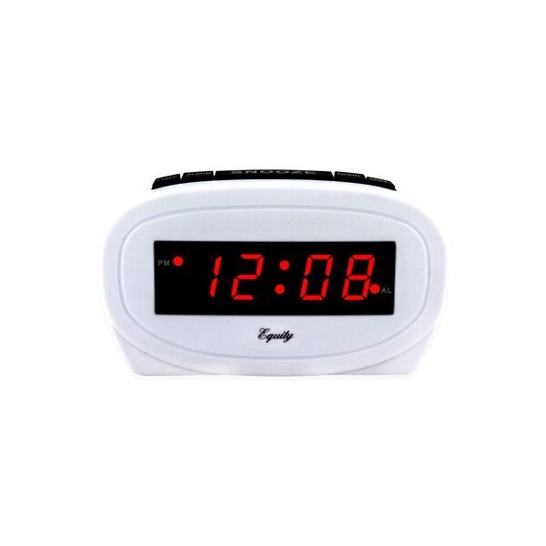 Equity's, White, LED Alarm Clock, 06 Red Led Digits Snooze Duration Of 9 Minutes, Can Repeat Up To 2 Hours, AC Powered, Battery Backup Requires One 9V Battery Not Included