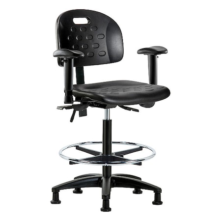 ESD Task Chair, Vinyl (Antibacterial), Black, 21-1/2 in to 29 in Seat Height, No Arms Arms, Rolling