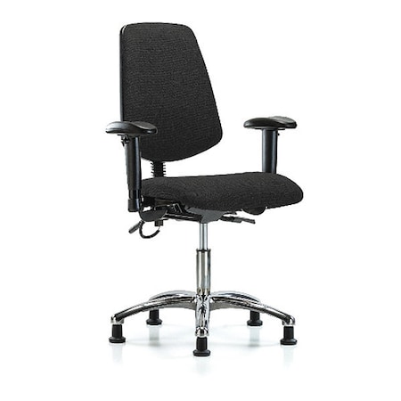 Poly Chair Chrome-High Bench Height with Adj Arms, Chrome Foot Ring, & Stationary Glides in Gray Poly