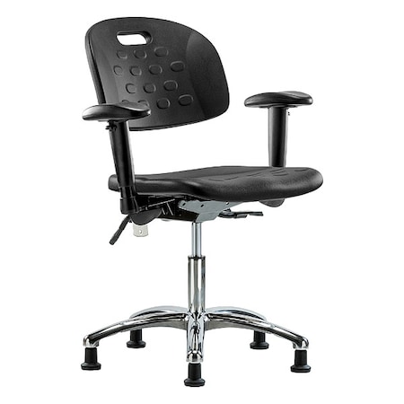 Poly Chair-Med Bench Ht with Med Back, Seat Tilt, Adj Arms, Black Foot Ring, &Stat Glides in Gray Poly