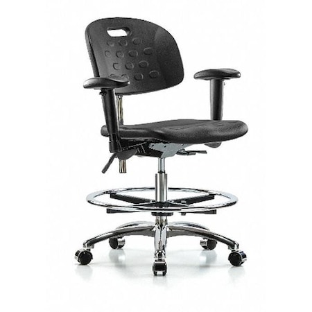 CL100CleanRoom Chair-High Bench Height with Seat Tilt, Chrome Foot Ring, &Casters in Gray Poly