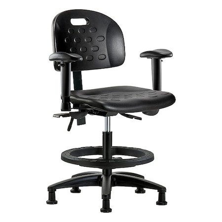 ESD Task Chair, Vinyl (Antibacterial), Black, 21-1/2 in to 29 in Seat Height, 6-Way Adjustable Arms