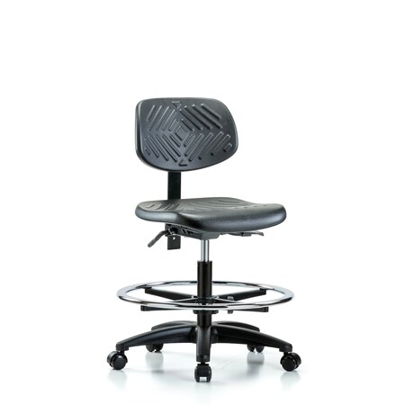 Chair, Vinyl, Med Bench, AA CF Casters, Blk, 6-Way Adjustable, 22" to 29" Height, Black