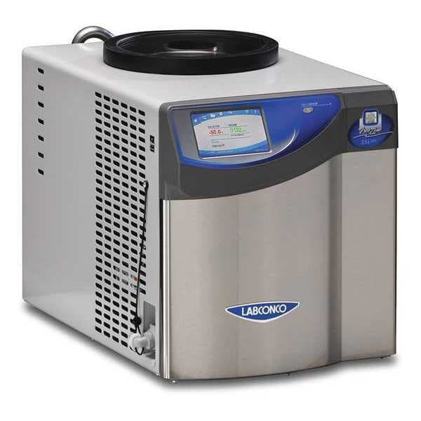 Freeze Dryer, Benchtop, Holding Capacity 2.5 L, Min. Temp. Rating -50 Degrees C, Collector Coil Material Stainless Steel, Drying Chamber Not Included, Purge Valve Not Included, 5/16 hp HP, Voltage 115V AC, 60 Hz, Height 16 29/32 in, Width 14 1/2 in, Depth 19 13/64 in