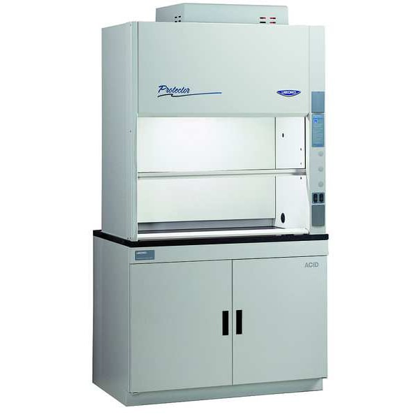 Fume Hood, Explosion Proof, Benchtop Mount, Number of Speeds 1, Air Flow By-Pass, Voltage 115/208 to 230V AC, 60 Hz, Single Phase, 7.8/4.4 Amps AC, Height 53 in, Width 47 in, Depth 25 in, Length 25 in, Duct Width 10 in, Powder-Coated Steel Finish, White, Includes Explosion Proof Blower, Series Basic 47, Agency Compliance CFR 29, Part 1910; SEFA 1; NFPA 45; ASHRAE 110; ANSI Z9.5; UL 61010-1; CAN/CSA C22.2 No. 61010.1; UL 1805; SEFA 8, For Use With General Chemistry