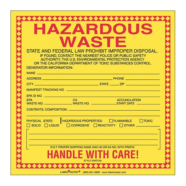 CaliFornia Waste Label,Package Quantity 100, Package Quantity 100