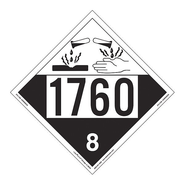 Corrosive Placard,UN 1760,Package Quantity 25, Package Quantity 25
