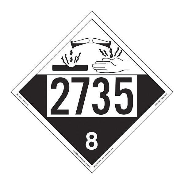 Corrosive Placard,UN 2735,Package Quantity 25, Package Quantity 25