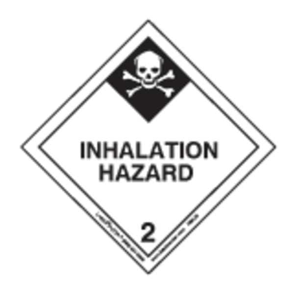 DOT Container Placard, Language English, Container Label/Placard Type Hazardous Class, Hazard Class Class 2 (Gases), DOT/UN Product Form Placard, Message Inhalation Hazard, Label Width 3 15/16 in, Label Height 3 15/16 in, Material Paper