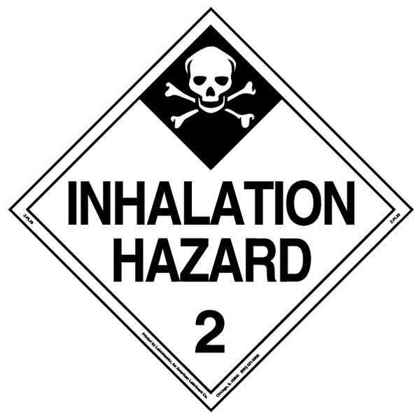 DOT Container Placard, Language English, Container Label/Placard Type Hazardous Class, Hazard Class Class 2 (Gases), DOT/UN Product Form Placard, Message Inhalation Hazard, Label Width 10 3/4 in, Label Height 10 3/4 in, Material Tagboard