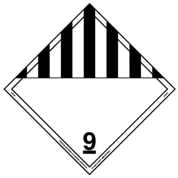 DOT Container Placard, Language English, Container Label/Placard Type Hazardous Class, Hazard Class Class 9 (Miscellaneous Hazardous Material), DOT/UN Product Form Placard, Message Misc. Dangerous Goods, Label Width 10 3/4 in, Label Height 10 3/4 in, Material Rigid Vinyl