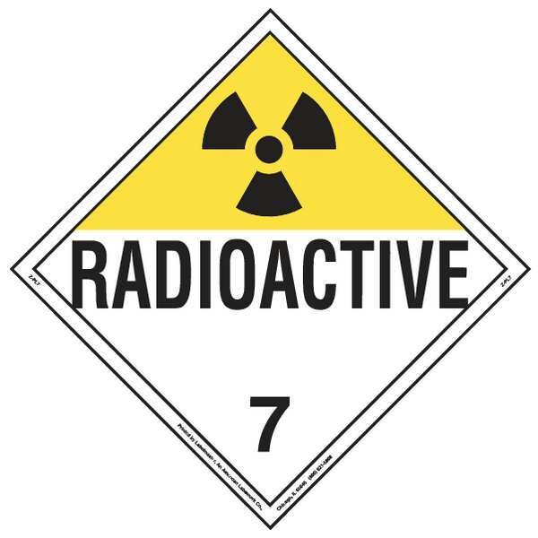 DOT Container Placard, Language English, Container Label/Placard Type Hazardous Class, Hazard Class Class 7 (Radioactive), DOT/UN Product Form Placard, Message Radioactive, Label Width 10 3/4 in, Label Height 10 3/4 in, Material Rigid Vinyl, Package Quantity 10