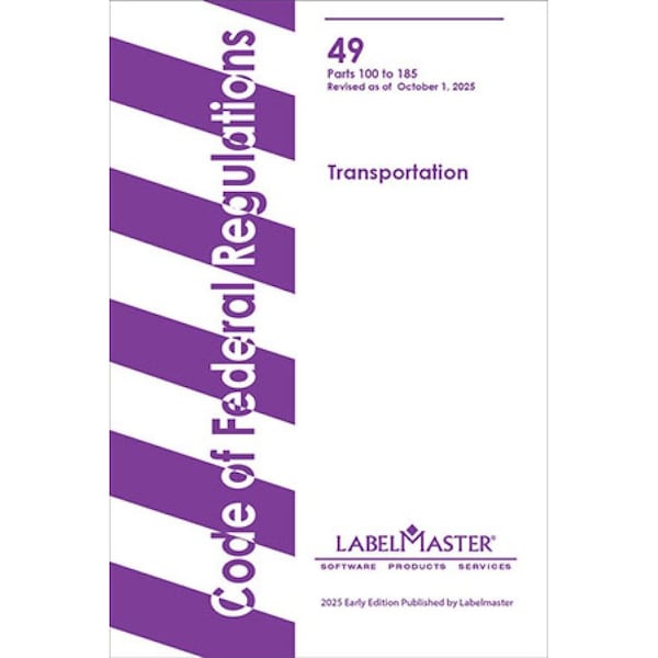 Stay current with the most current regulatory updates when you rely on Labelmaster's Early 49 CFR, revised October 2025. This is released about six months prior to the release of the government 49 CFR, with this version serving as an update to Parts 100-185. Featuring the same format as the government release, this spiral edition is designed with a user-friendly layout that makes it ever easier to find information. Also includes convenient tabs to bookmark sections of the 49 CFR that you reference most often._x000D_ _x000D_ Make sure you satisfy your training requirements for shipping hazmat by ground! You can find our selection of online training courses for ground shipping here!
