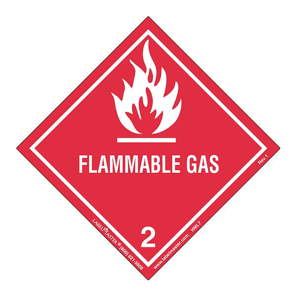Flammable Gas Label,Worded,Package Quantity 50, Hazard Class Class 2 (Flammable Gas), DOT/UN Product Form Label, Message Flammable Gases, Label Width 4 in, Label Height 3 15/16 in, Material Paper, Package Quantity 50