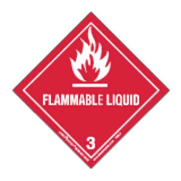 DOT Container Label, Language English, Container Label/Placard Type Hazardous Class, Hazard Class Class 3 (Flammable Liquids), DOT/UN Product Form Label, Message Flammable Liquid, Label Width 3 15/16 in, Label Height 3 15/16 in, Material Paper, Package Quantity 100