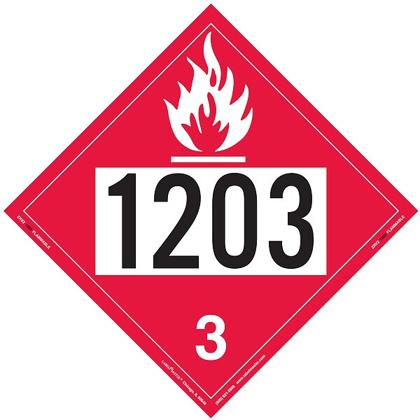 Flammable Liquid Placard, Container Label/Placard Type UN, Hazard Class Class 3 (Flammable Liquids), DOT/UN Product Form Placard, Message 1203, Label Width 10 3/4 in, Label Height 10 3/4 in, Material Vinyl, Package Quantity 25