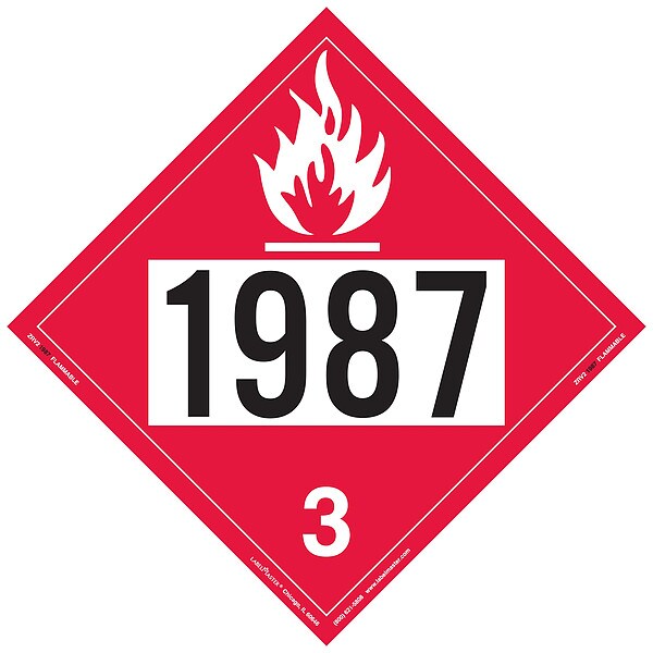 Flammable Liquid Placard, Container Label/Placard Type UN, Hazard Class Class 3 (Flammable Liquids), DOT/UN Product Form Placard, Message 1987, Label Width 10 3/4 in, Label Height 10 3/4 in, Material Vinyl, Package Quantity 25