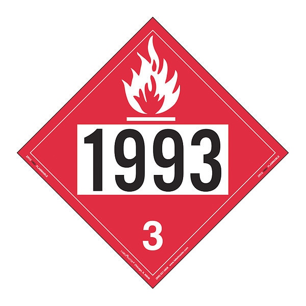 Flammable Liquid Placard,1993,Package Quantity 25