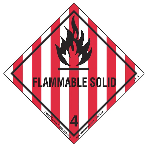 DOT Container Label, Language English, Container Label/Placard Type Hazardous Class, Hazard Class Class 4 (Flammable Solids), DOT/UN Product Form Label, Message Flammable Solid, Label Width 4 in, Label Height 4 in, Material PVC-Free Film