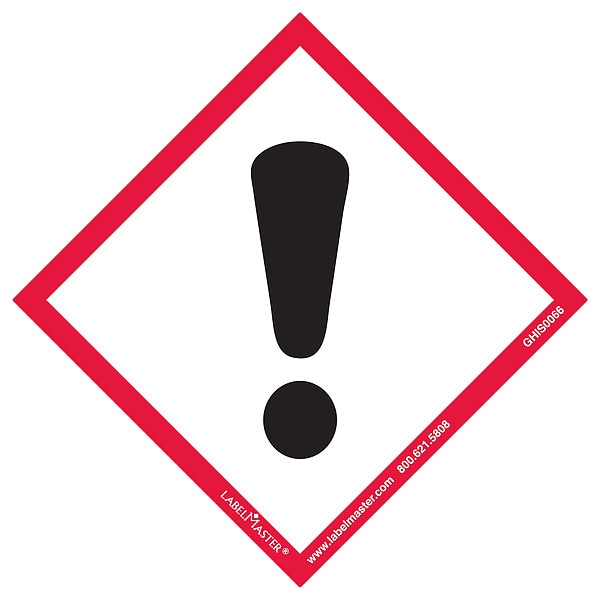 GHS Label, Adhesive Adhesive, Adhesive Material Acrylic, Adhesive Properties Permanent Adhesive, Background Color White, Hazard Communication Standard GHS, Height 4 in, Kit Contents Not Applicable, Lamination Type Not Laminated, Language No Text, Material Paper, Material Properties Not Applicable, Maximum Service Temperature 160 Degrees F, Minimum Service Temperature -65 Degrees F, Mounting Type Adhesive, Package Type Roll, Preprinted Images Exclamation Mark, Preprinted Text No Text