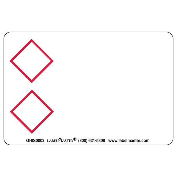 GHS Label, Adhesive Adhesive, Adhesive Material Acrylic, Adhesive Properties Permanent Adhesive, Background Color White, Hazard Communication Standard GHS, Height 2 in, Kit Contents Not Applicable, Lamination Type Not Laminated, Language No Text, Material Film, Material Properties Not Applicable, Maximum Service Temperature 200 Degrees F, Minimum Service Temperature -65 Degrees F, Mounting Type Adhesive, Package Type Roll, Preprinted Images Two Red Diamonds, Preprinted Text No Text