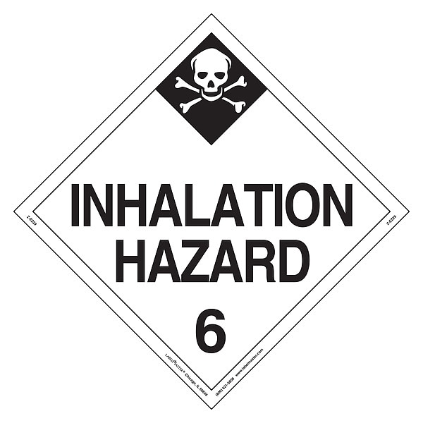 Inhalation Hazard Placard, Language English, Container Label/Placard Type Hazardous Class, Hazard Class Class 6 (Poisonous/Toxic and Infectious Substance), DOT/UN Product Form Placard, Message Inhalation Hazard 6, Label Width 10 3/4 in, Label Height 10 3/4 in, Material Vinyl, Package Quantity 25