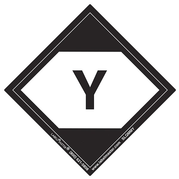 DOT Handling Label, Language English, Handling Label/Placard Type Limited Quantities, DOT/UN Product Form Label, Message Y, Label Width 2 in, Label Height 2 in, Material Polypropylene, Labels per Roll 500, Background Color Black, White