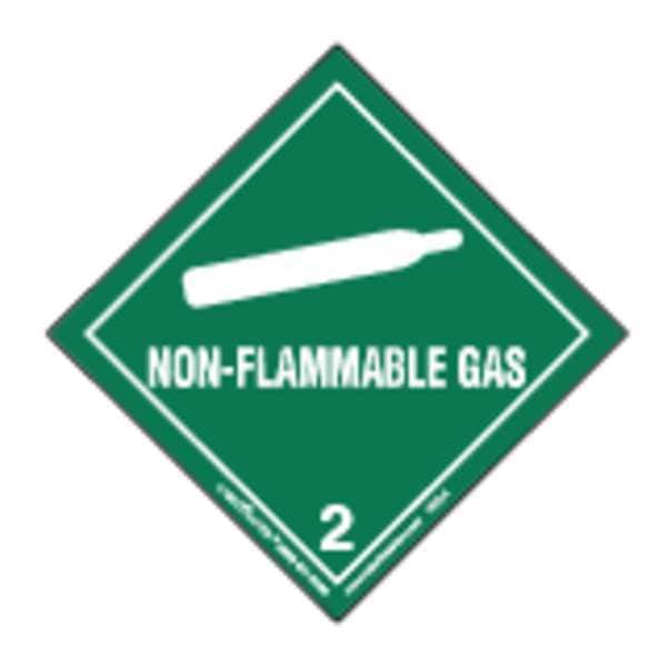 DOT Container Label, Language English, Container Label/Placard Type Hazardous Class, Hazard Class Class 2 (Gases), DOT/UN Product Form Label, Message Non-Flammable Gas, Label Width 3 15/16 in, Label Height 3 15/16 in, Material Paper