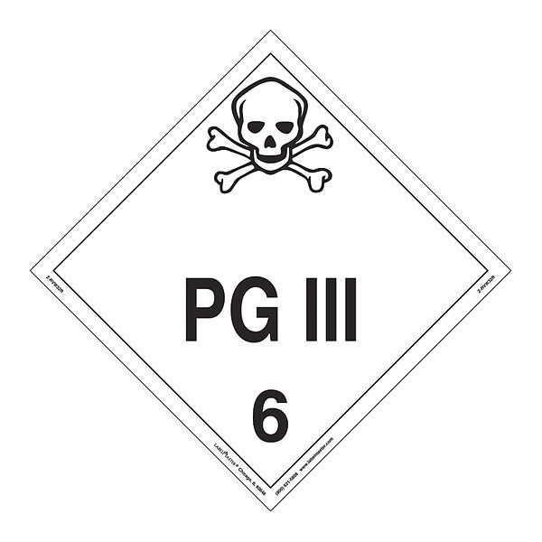 PG III Placard,Worded,Rigid,Package Quantity 25
