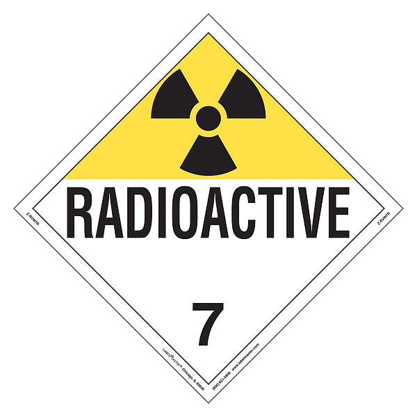 Radioactive Placard, Language English, Container Label/Placard Type Hazardous Class, Hazard Class Class 7 (Radioactive), DOT/UN Product Form Placard, Message Radioactive, Label Width 10 3/4 in, Label Height 10 3/4 in, Material Vinyl, Package Quantity 25