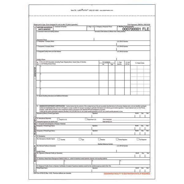 Uniform Hazardous Waste Manifest,PK100, Package Quantity 100