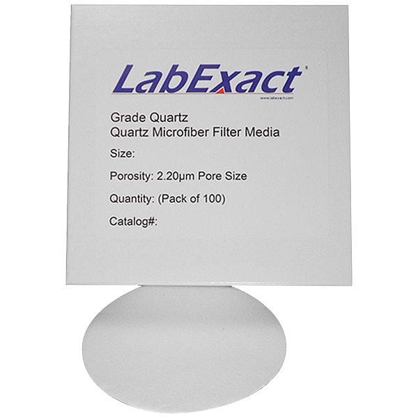 Glass Microfiber Filter, Diameter 4.25 cm, Grade Quartz, Thickness 0.47 mm, Pore Size 2.2 um, Material Binderless Quartz Glass Microfiber, Product Type Filter, Maximum Operating Temperature - Centigrade 1,000 Degrees C, For Use With Liquids or Air, Package Quantity 100