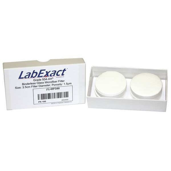 Glass Microfiber Filter, Diameter 3.5 cm, Grade 934-AH, Thickness 0.43 mm, Pore Size 1.5 um, Material Binderless Borosilicate Glass Microfiber, Product Type Filter, Maximum Operating Temperature - Centigrade 550 Degrees C, For Use With Air Pollution Monitoring, Cell Harvesting, Laboratory Applications, Liquid Scintillation Counting, Removal of Turbidity and Filtration of Bacterial Cultures, Total Suspended Solids in Water, Volatile Suspended Solids, Water Pollution Monitoring