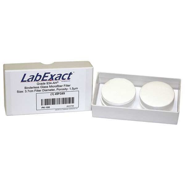 Glass Microfiber Filter, Diameter 3.7 cm, Grade 934-AH, Thickness 0.43 mm, Pore Size 1.5 um, Material Binderless Borosilicate Glass Microfiber, Product Type Filter, Maximum Operating Temperature - Centigrade 550 Degrees C, For Use With Air Pollution Monitoring, Cell Harvesting, Laboratory Applications, Liquid Scintillation Counting, Removal of Turbidity and Filtration of Bacterial Cultures, Total Suspended Solids in Water, Volatile Suspended Solids, Water Pollution Monitoring