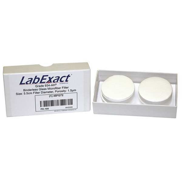 Glass Microfiber Filter, Diameter 5.5 cm, Grade 934-AH, Thickness 0.43 mm, Pore Size 1.5 um, Material Binderless Borosilicate Glass Microfiber, Product Type Filter, Maximum Operating Temperature - Centigrade 550 Degrees C, For Use With Air Pollution Monitoring, Cell Harvesting, Laboratory Applications, Liquid Scintillation Counting, Removal of Turbidity and Filtration of Bacterial Cultures, Total Suspended Solids in Water, Volatile Suspended Solids, Water Pollution Monitoring